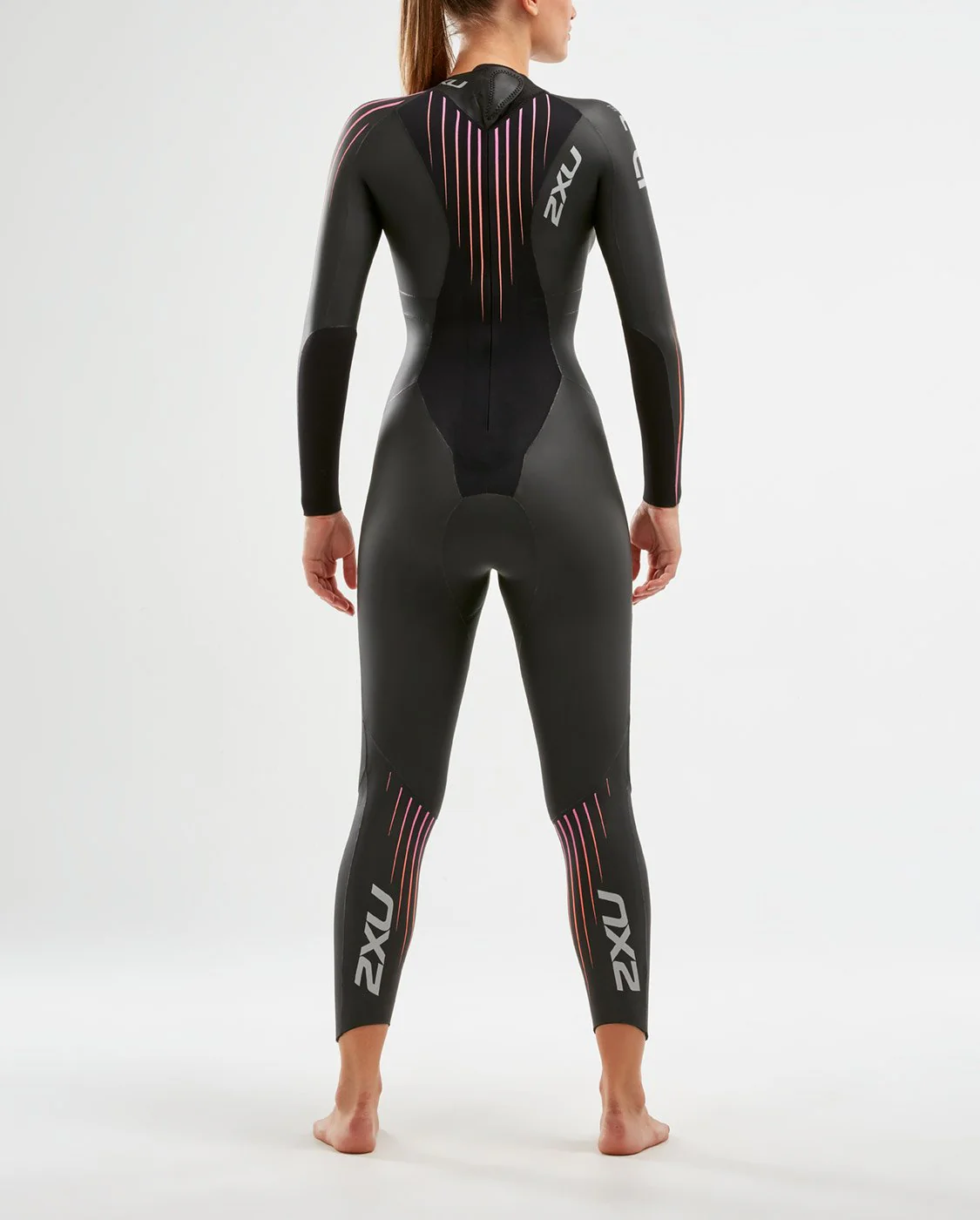 Your suit should fit adequately in terms of both your height and weight. In the case that you fit into more than one size, you should opt for the smaller size. While 2XU Wetsuits come in both men's and women's styles, some females prefer the fit of a men's suit. This is fine. On the arms, your wetsuit sleeves should finish at least one finger gap in distance from your wrist bone. This will ensure the suit is sitting high enough and does not pull on the shoulders. In the legs, the wetsuit legs should finish 3/4 of the way down your shin. This will ensure the suit is sitting high into the crutch. If sitting too low, the suit will pull on the top of the shoulders.